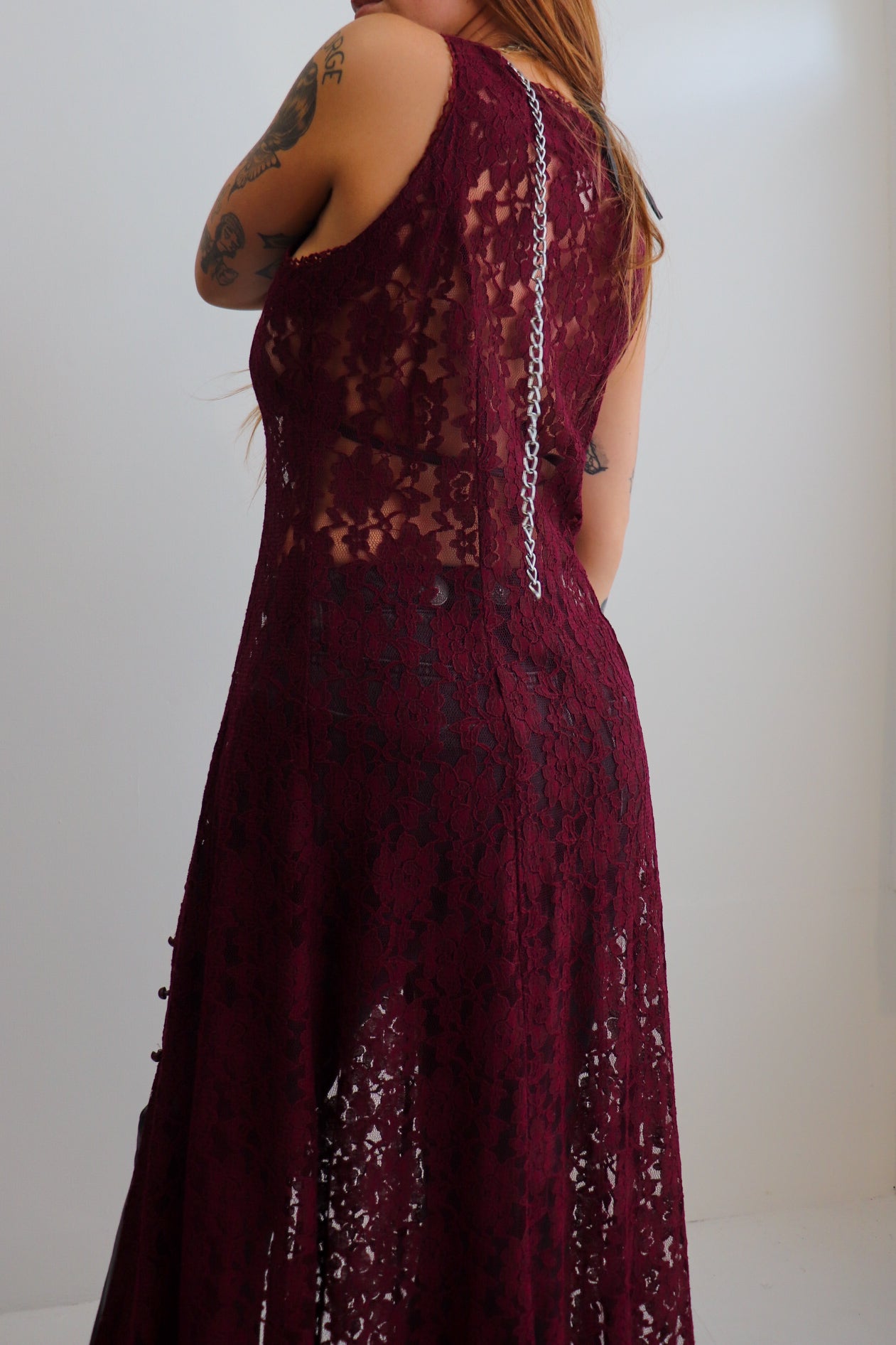 90s Burgundy Lace Duster
